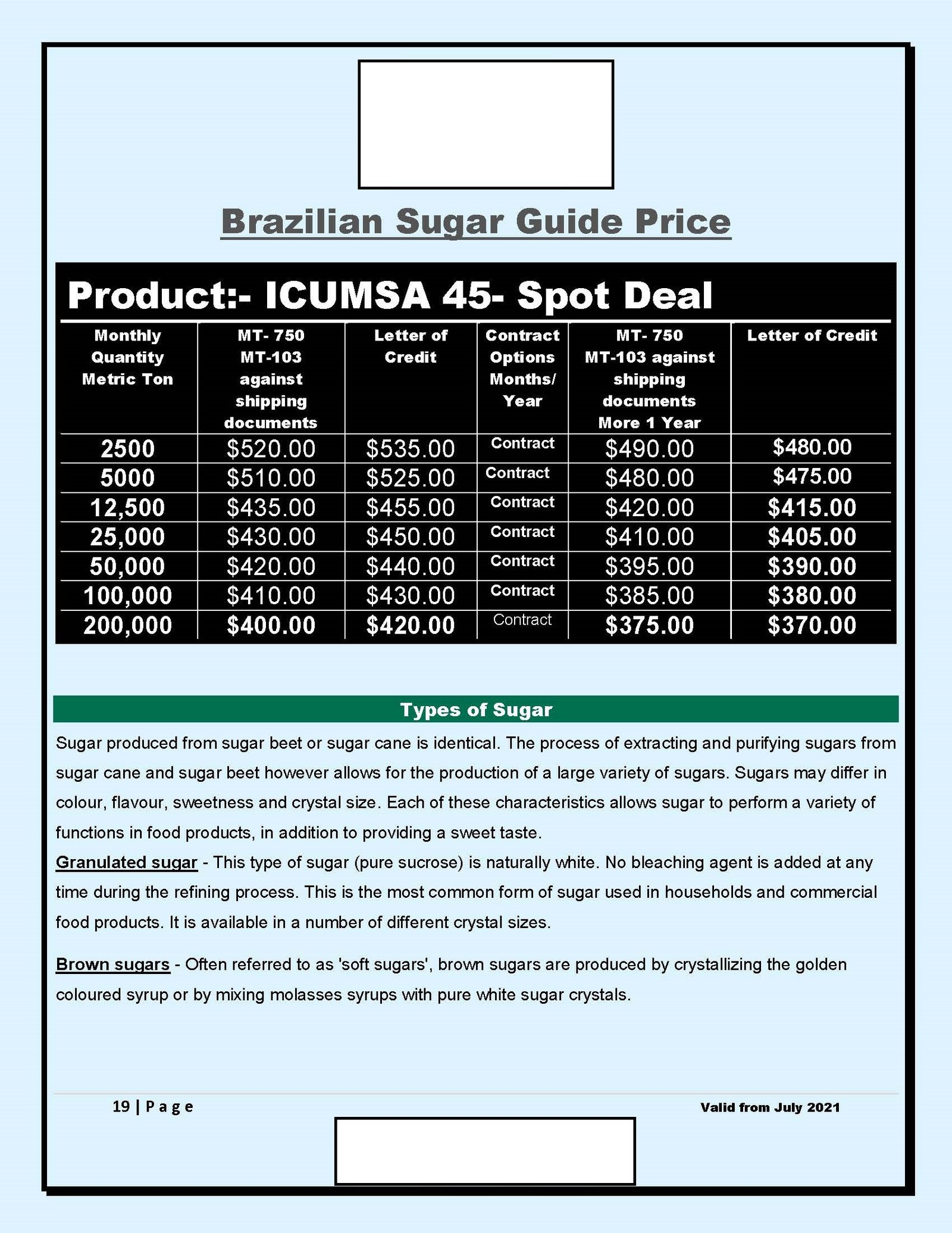 **POLARIZATION 99.80% DEGREES MIN **ASH BY ELECTRICAL CONDUCT 0.04% MAX (ON DRY WEIGHT BASIS) **ASH CONTENT 0.08 MAX **MOISTURE 0.04% MAX **ICUMSA 45 RBU MAX, (BRAZIL S.G.S. SCALE) **SOLUBILITY 100% DRY AND FREE FLOWING **COLOR SPARKING WHITE **ICUMSA MAXIMUM 45 ATTENUATION INDEX UNITS (ICUMSA METHOD NO.: 4-1978) **RADIATION WITHIN CS-137 OF 50 BQ PER KG **GRANULATION FINE CRYSTAL **CROP LATEST **MAGNETIC PARTICLES MG/KG 4 MAX **SO2 MG/KG 20 MAX **SULPHOR DIOXIDE 20 MG/KG MIN **SEDIMENTS NONE **SMELL TYPICAL AND SPECIFIC FOR SUGAR **REDUCING SUGAR 0.05% MAX BY WEIGHT **HPN STAPH AUREUS NOT DETECTED IN 1 GRAM **MAXIMUM AS 1 P. P. M. **MAXIMUM PB 1 P. P. M. **MAXIMUM CU 3 P. P. M. **SUBSTANCE SOLID CRYSTAL **TOLERANCE (± 5%)